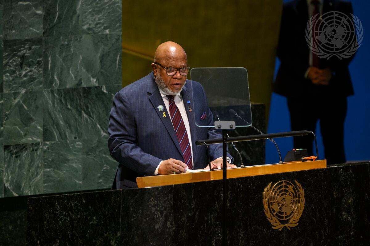 Dennis Francis, President of the seventy-eighth session of the General Assembly, addresses the 83rd plenary meeting of the General Assembly. The Assembly paid tribute to the memory of Seyyed Ebrahim Raisi, President of the Islamic Republic of Iran.