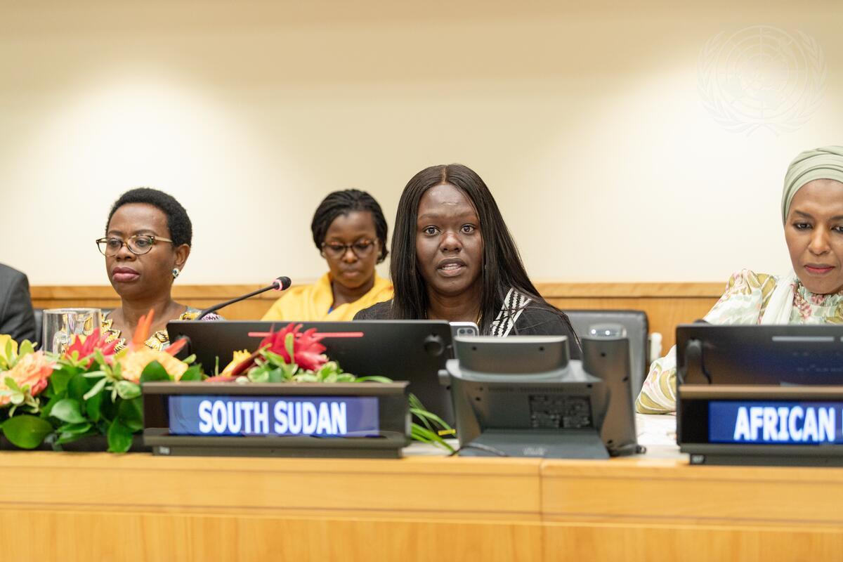 Cecilia A.M. Adeng (centre), Permanent Representative of South Sudan to the United Nations, addresses the 2024 Africa Dialogue Series high-level policy dialogue (HLPD).