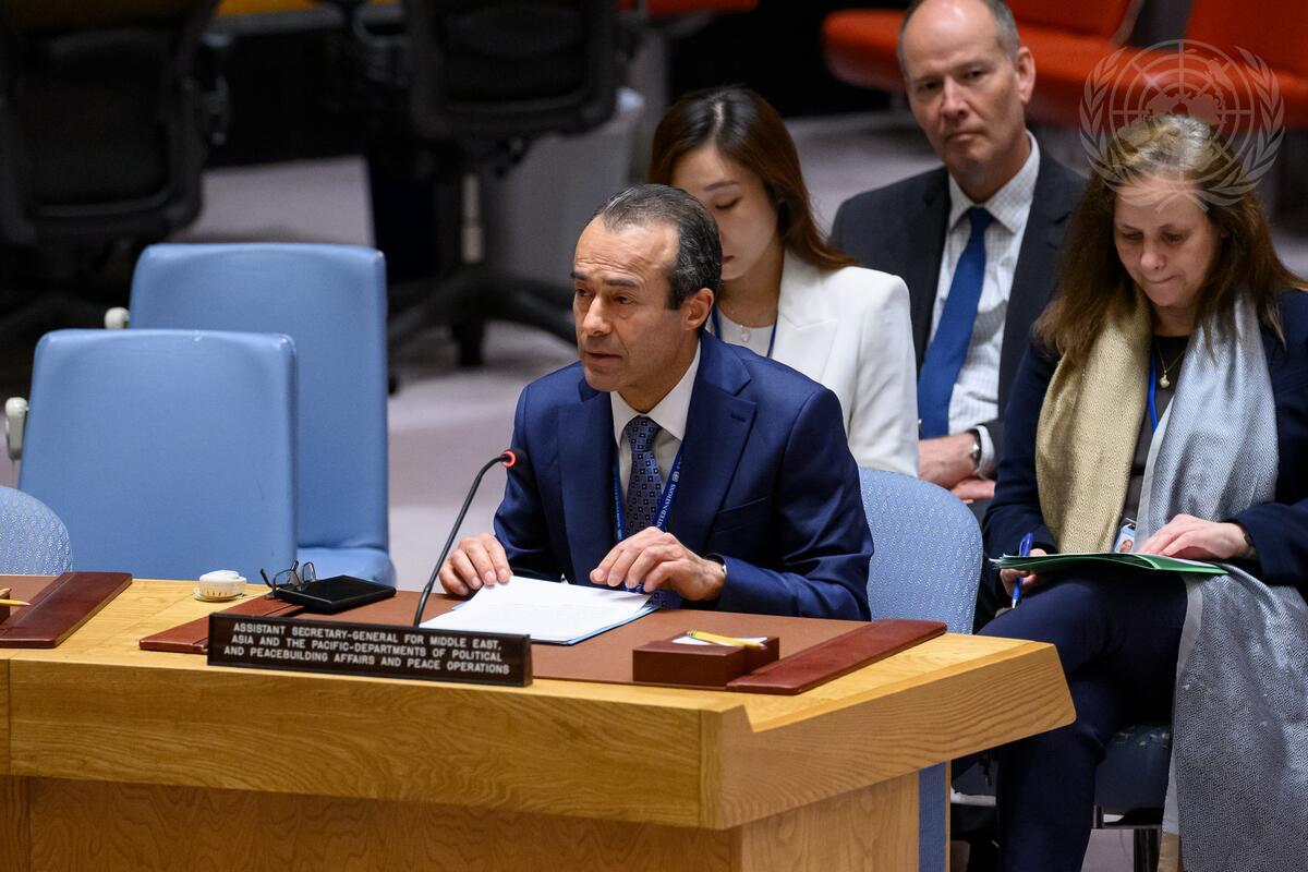 Khaled Khiari, Assistant Secretary-General for Middle East, Asia and the Pacific, Departments of Political and Peacebuilding Affairs and Peace Operations, briefs the Security Council meeting on Non-proliferation and Democratic People’s Republic of Korea.