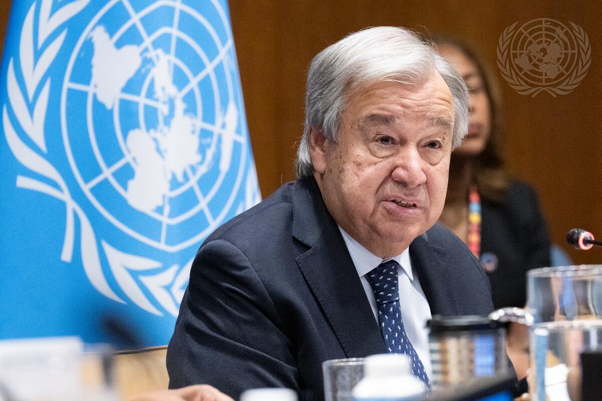Secretary-General António Guterres speaks during a United Nations Global Compact board session.