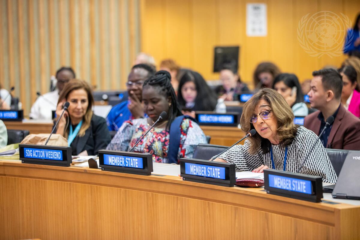 Caption Description María del Carmen Squeff (right), Permanent Representative of Argentina to the United Nations, speaks during the event on Women and Girls: "Towards a Rights-centred Gender-Transformative Economy, Including a New International Financial Architecture"