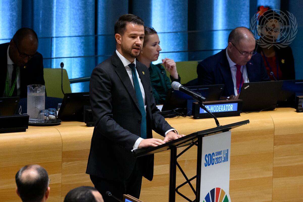 Jakov Milatović, President of Montenegro, addresses the fourth leaders’ dialogue on “Strengthening integrated policies and public institutions for achieving the SDGs” held during the 2023 SDG Summit.