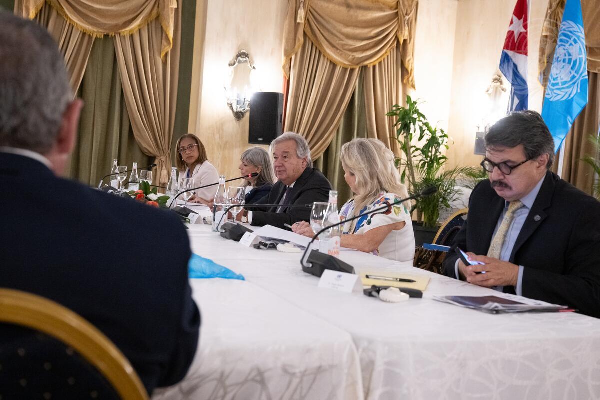Secretary-General António Guterres (centre) meets with the United Nations Country Team (UNCT) in Cuba.