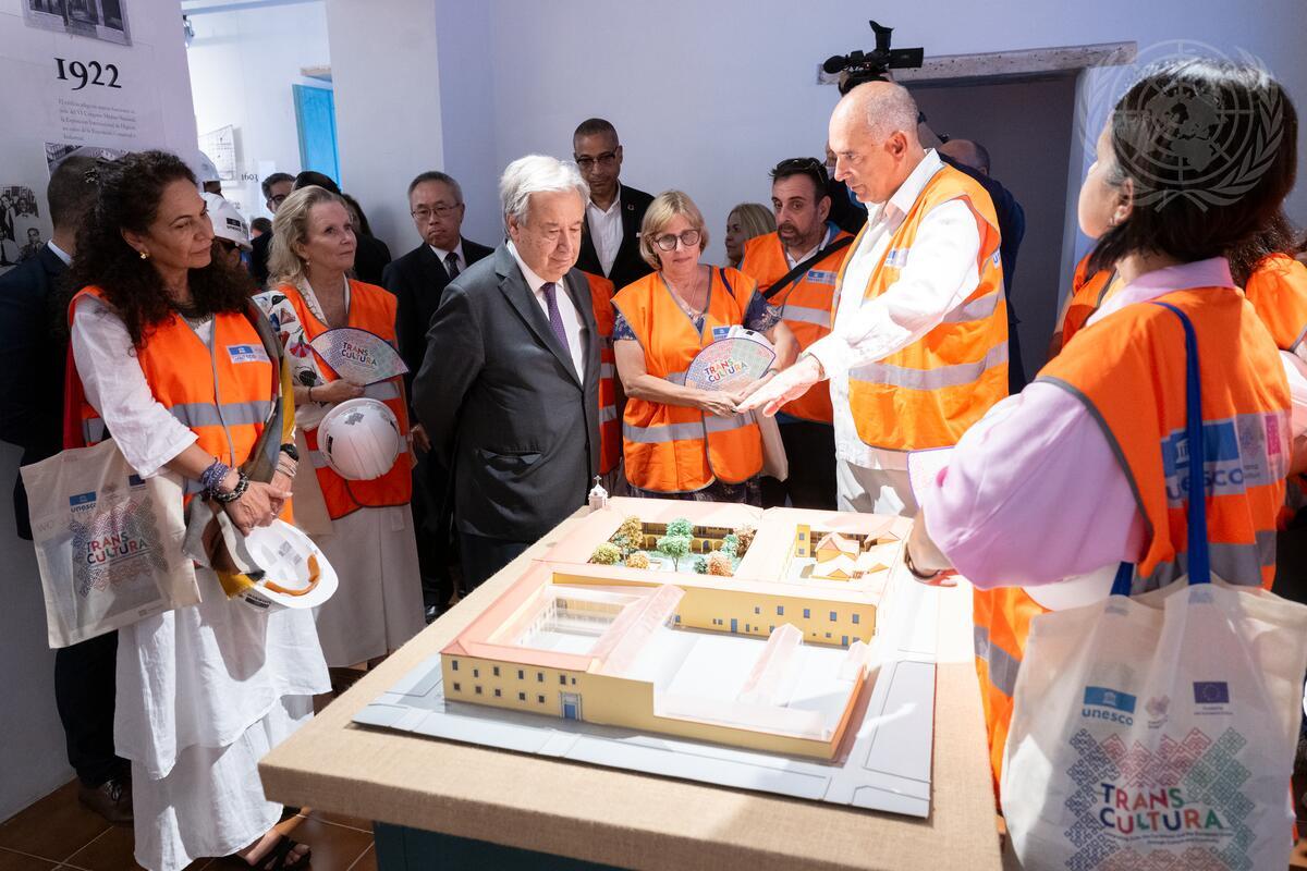 Secretary-General António Guterres (centre left at table) visits Convento de Santa Clara in Havana, Cuba.