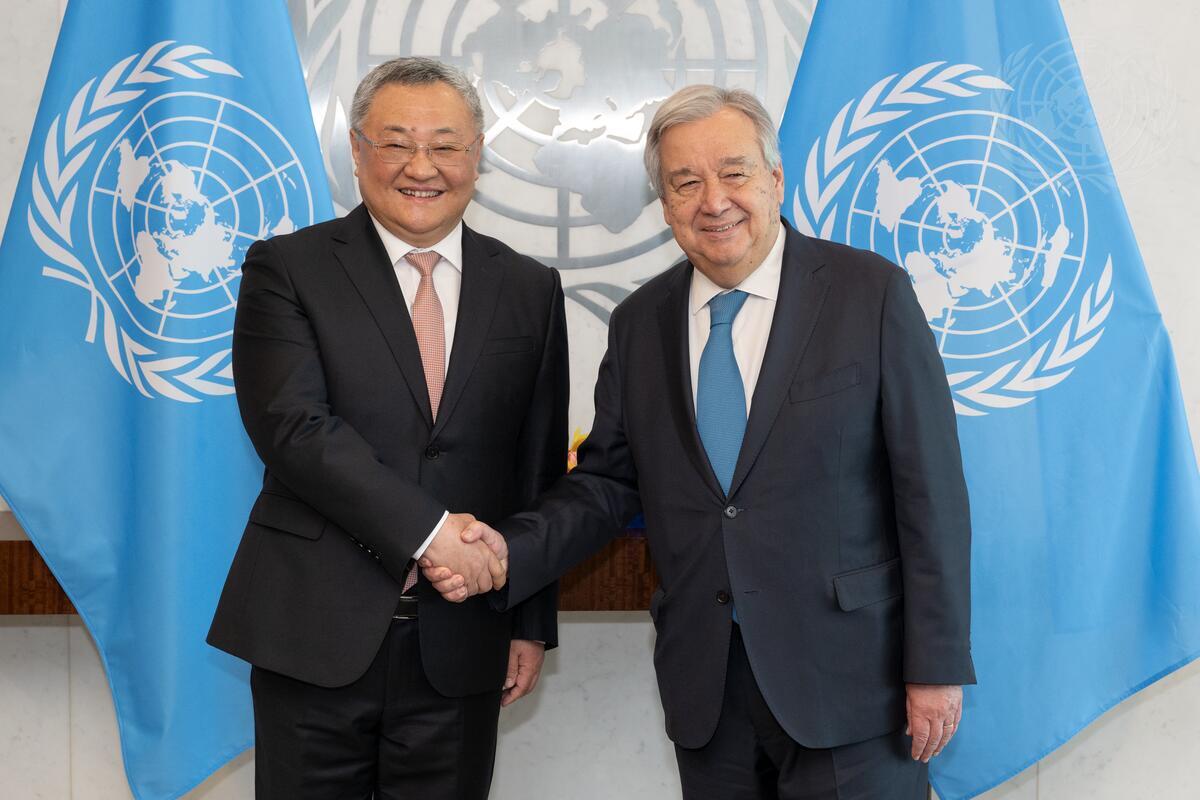 Fu Cong (left), Permanent Representative of the People’s Republic of China to the United Nations, presents his credentials to Secretary-General António Guterres.