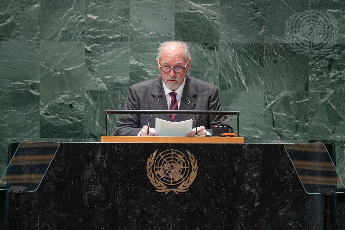 Ricardo Lagorio, Permanent Representative of Argentina to the United Nations, addresses the high-level thematic debate on debt sustainability and socio-economic equality for all that opens the General Assembly Sustainability Week (15-19 April).