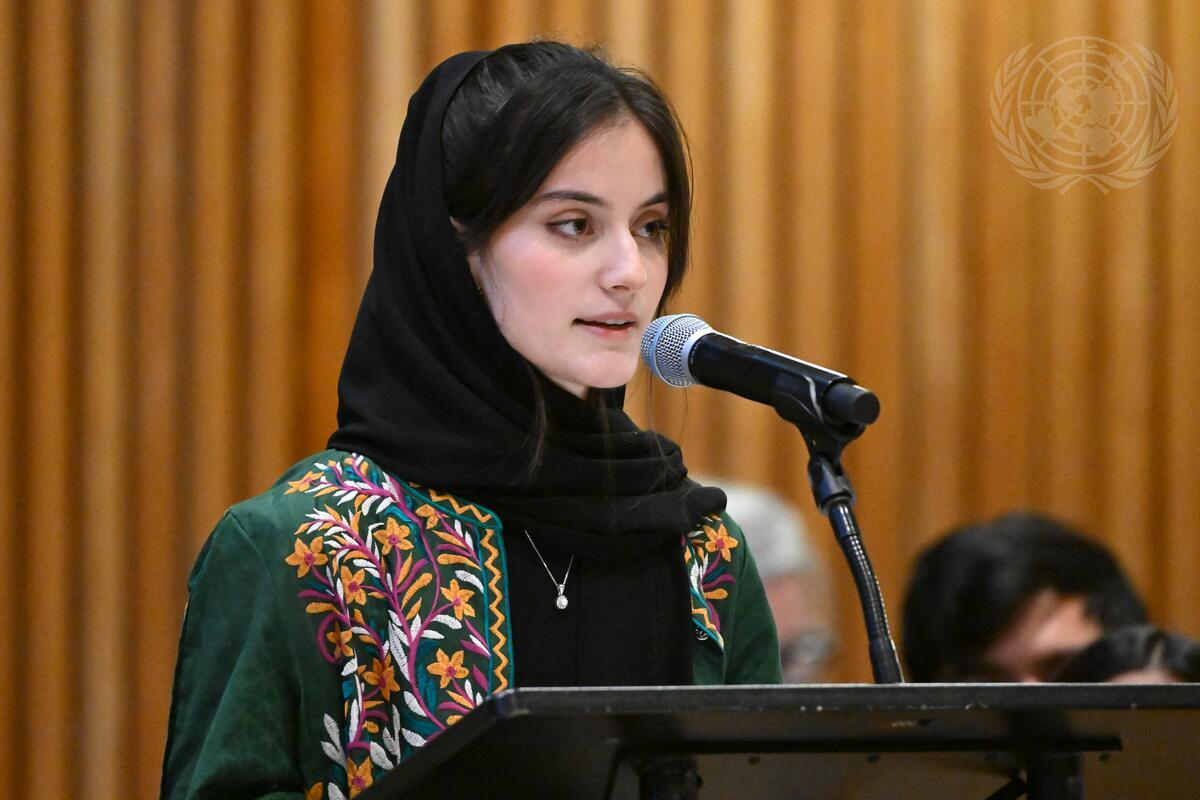 Sarah Baharaki, Global Youth Ambassador, Theirworld, and Representative of the Major Group on Children and Youth (MGCY), addresses the United Nations Economic and Social Council (ECOSOC) Youth Forum 2024 on the theme: “Youth shaping sustainable and innovative solutions: Reinforcing the 2030 Agenda and eradicating poverty in times of crises”.
