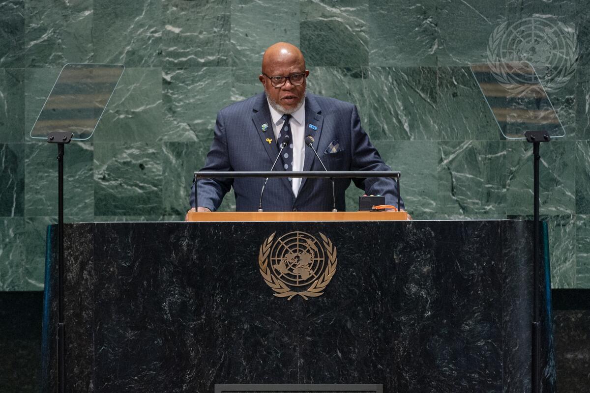 Dennis Francis, President of the seventy-eighth session of the General Assembly, addresses the General Assembly high-level thematic event on Tourism.