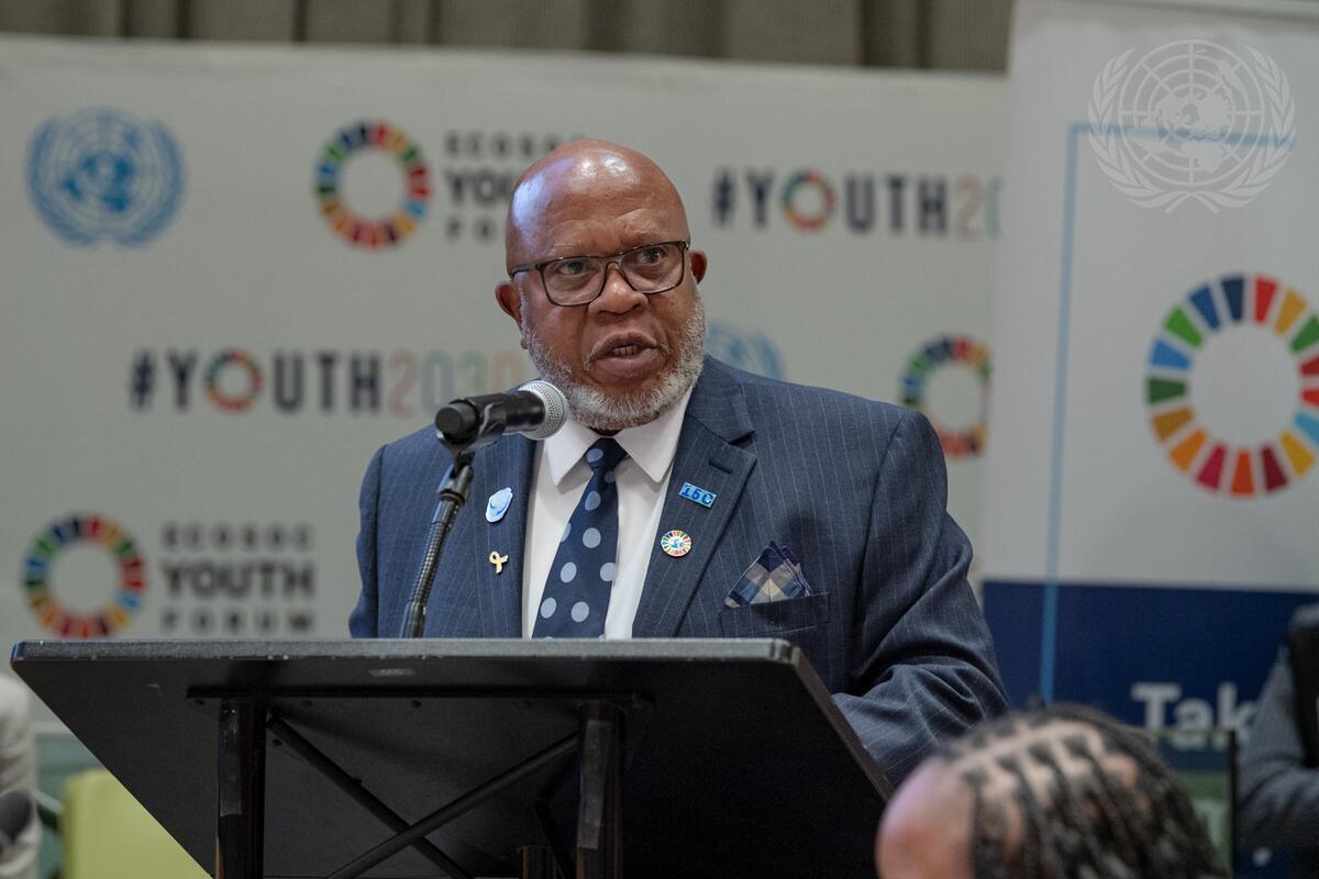 Dennis Francis, President of the seventy-eighth session of the General Assembly, addresses the United Nations Economic and Social Council (ECOSOC) Youth Forum 2024 on the theme: “Youth shaping sustainable and innovative solutions: Reinforcing the 2030 Agenda and eradicating poverty in times of crises”.