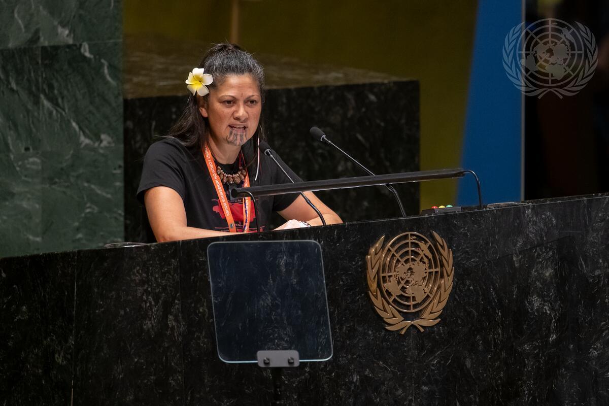 Catherine Murupaenga-Ikenn, Indigenous Human Rights Defender, addresses the General Assembly high-level event to commemorate the tenth anniversary of the adoption of the outcome document of the high-level plenary meeting of the General Assembly known as the World Conference on Indigenous Peoples.