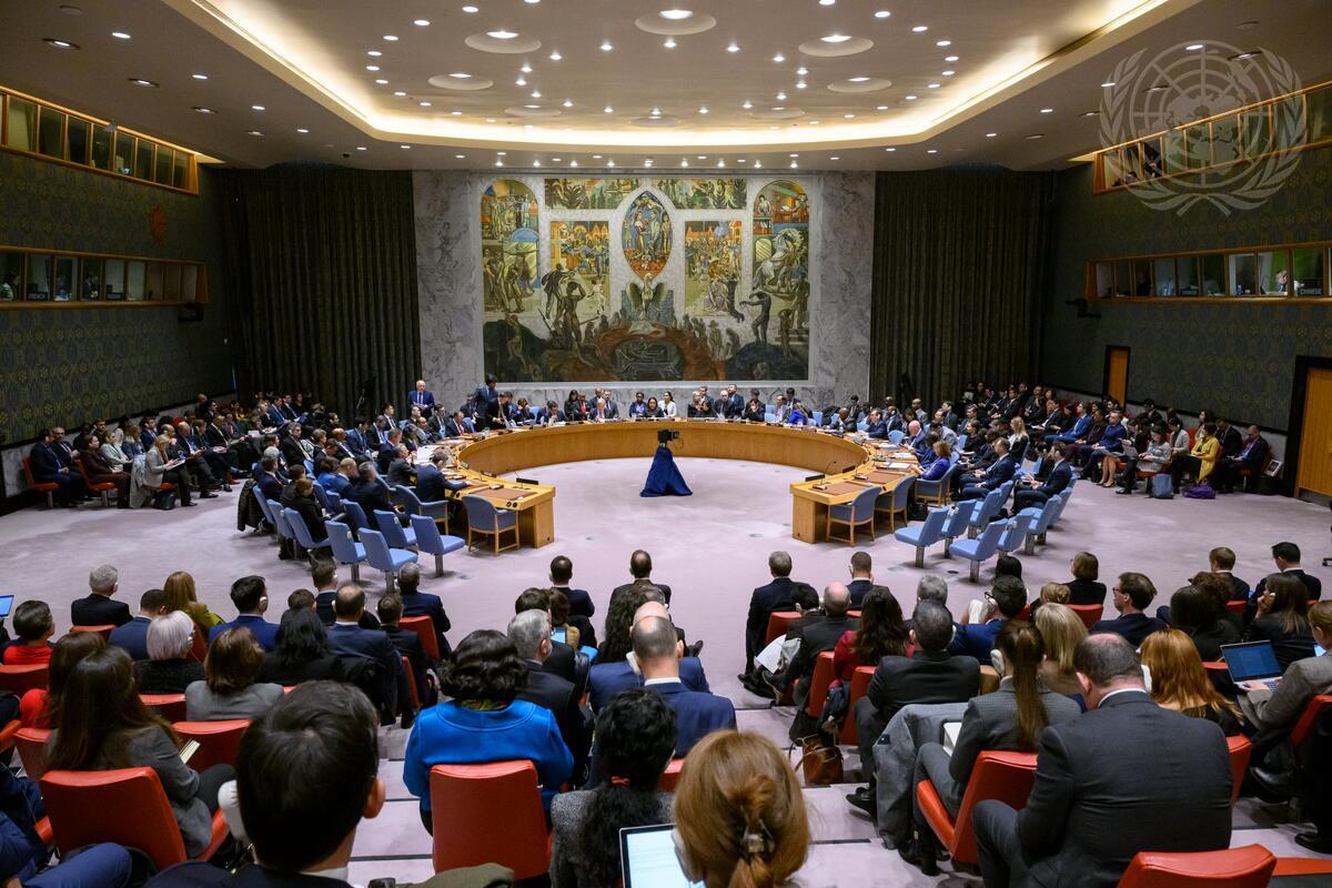 A wide view of the Security Council meeting on maintenance of peace and security of Ukraine.