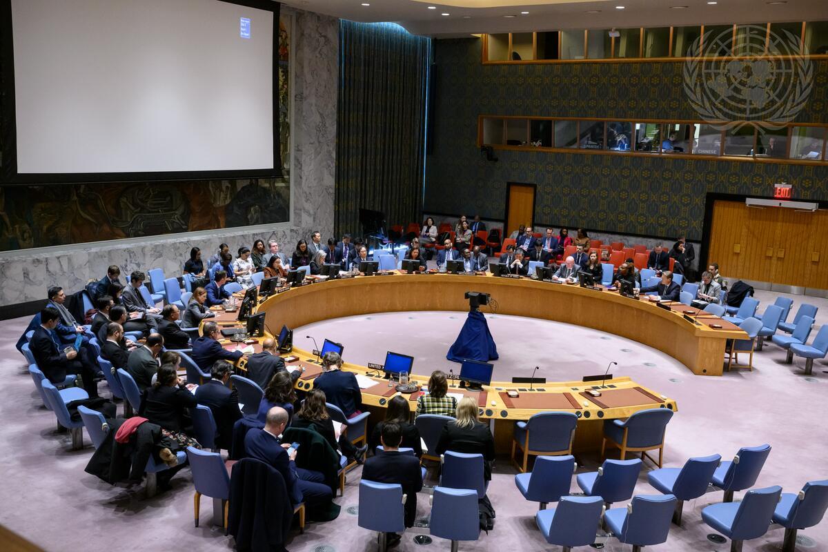 A wide view of the Security Council meeting to hear a briefing on the Security Council mission to Colombia (7 to 11 February 2024).