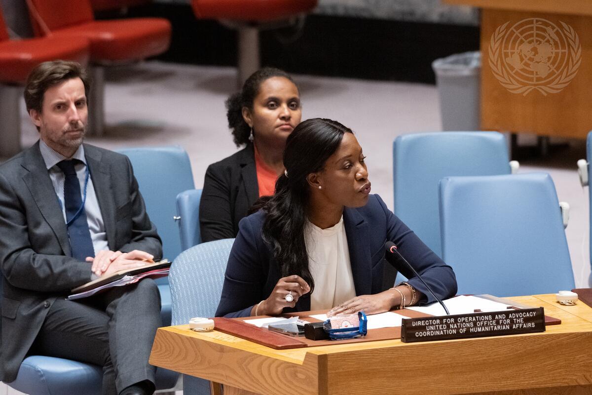 Edem Wosornu, Director of Operations and Advocacy, Office for the Coordination of Humanitarian Affairs (OCHA), briefs the Security Council meeting on the situation in the Sudan and South Sudan. The Council heard a Report of the Secretary-General on the situation in the Sudan and the activities of the United Nations Integrated Transition Assistance Mission in the Sudan (UNITAMS).