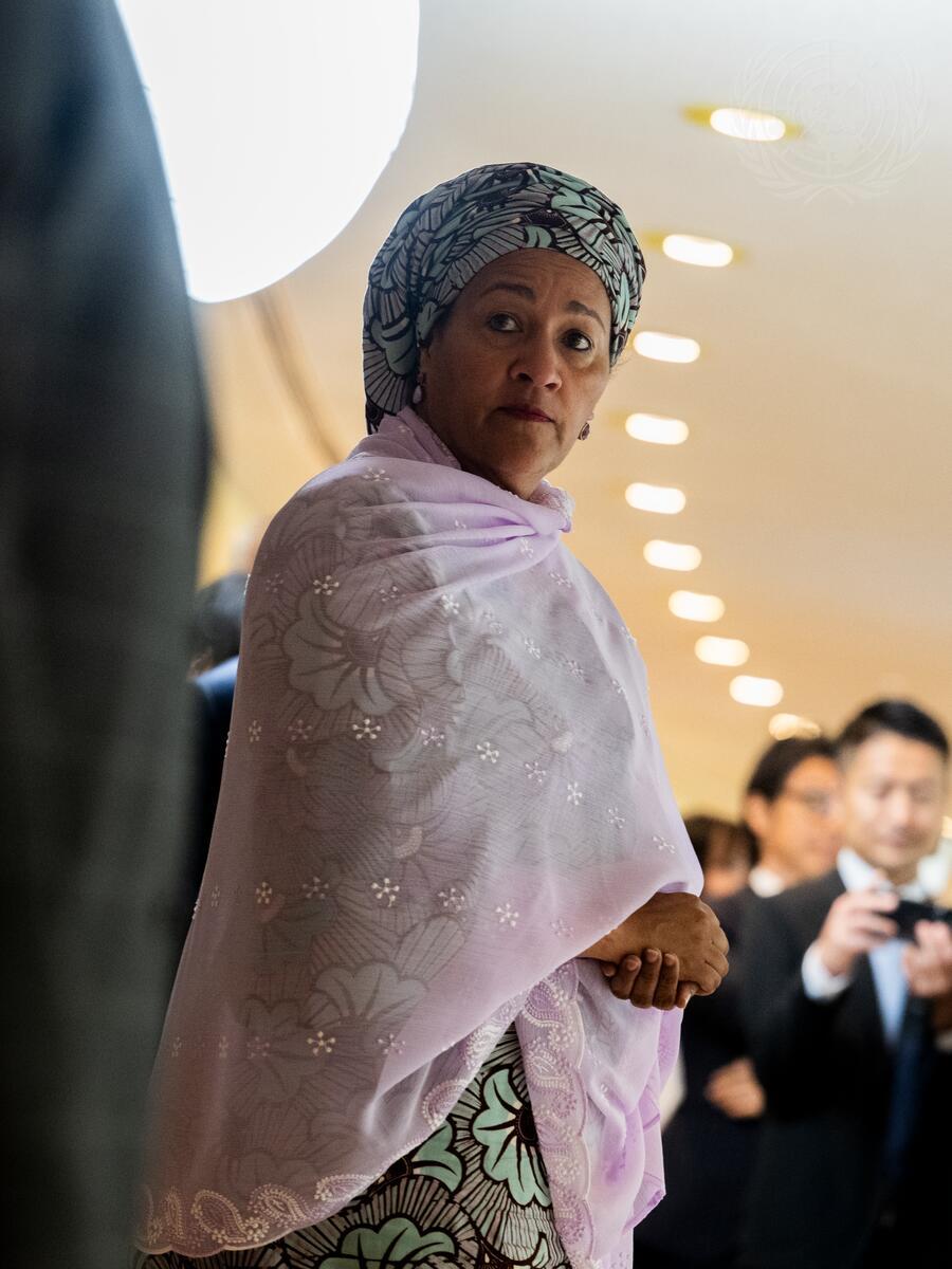Deputy Secretary-General Amina Mohammed attends the Peace Bell ceremony held at UN headquarters in observance of the 42nd Anniversary of the International Day of Peace (21 September). The theme of the International Day of Peace of 2023 is “Actions for peace: Our ambition for the #GlobalGoals”.
