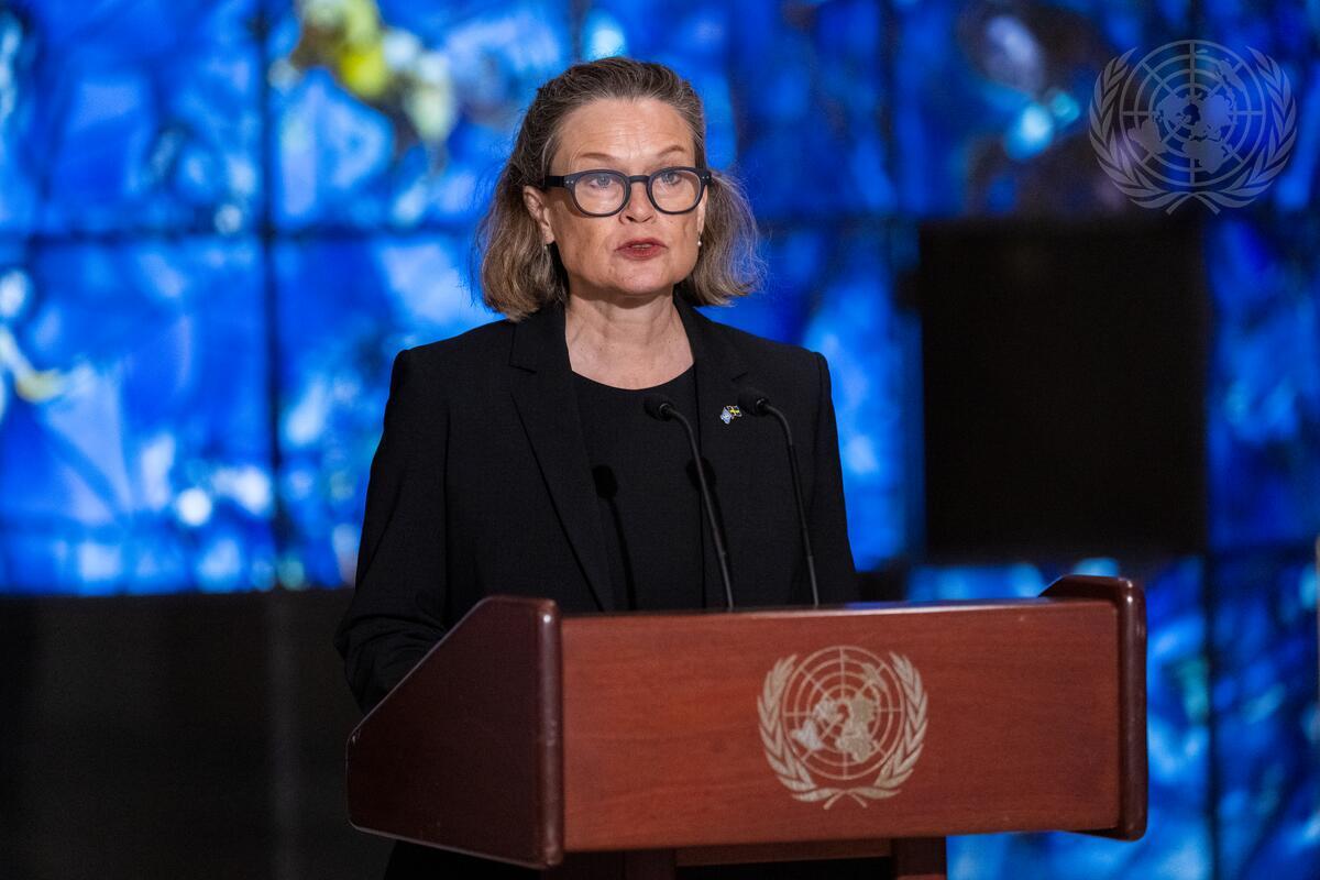 to the United Nations, addresses a wreath laying ceremony commemorating the 62nd anniversary of the death of former Secretary-General Dag Hammarskjöld.