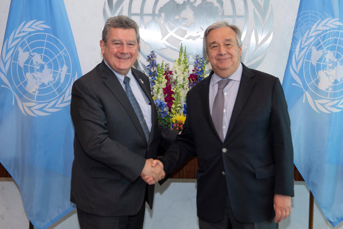 Elbio Oscar Rosselli Frieri, Permanent Representative of Uruguay to the United Nations, pays a farewell call on Secretary-General António Guterres.