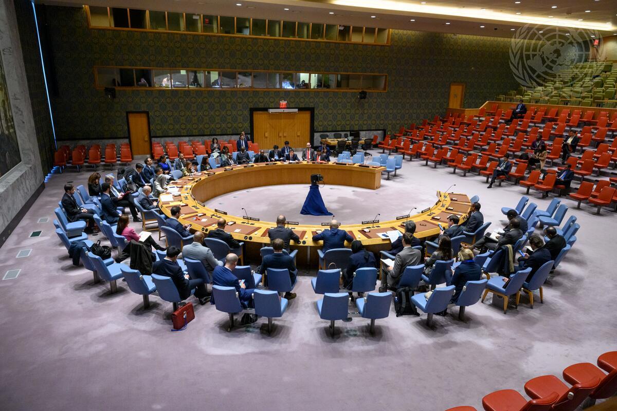 A wide view of the Security Council meeting on the situation in Somalia. The Council discussed a letter dated 29 September 2023 from the Chair of the Security Council Committee pursuant to resolution 751 (1992) concerning Al-Shabaab addressed to the President of the Security Council.
