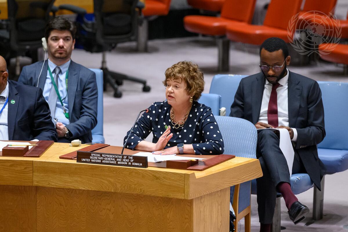 Catriona Laing, Special Representative of the Secretary-General for Somalia and Head of the United Nations Assistance Mission in Somalia, briefs the Security Council meeting on the situation in Somalia. The Council heard a report of the Secretary-General on Somalia.