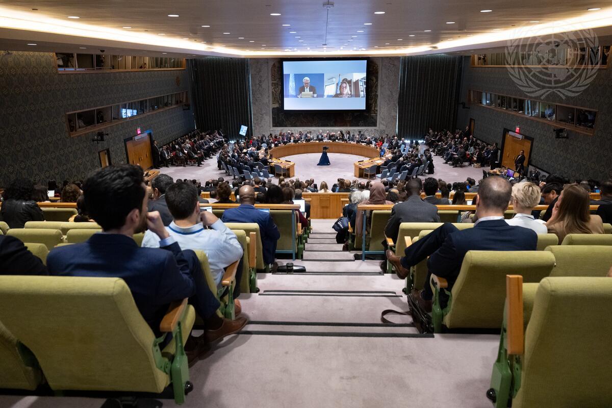 A wide view of the Security Council meeting on the situation in the Middle East, including the Palestinian question.