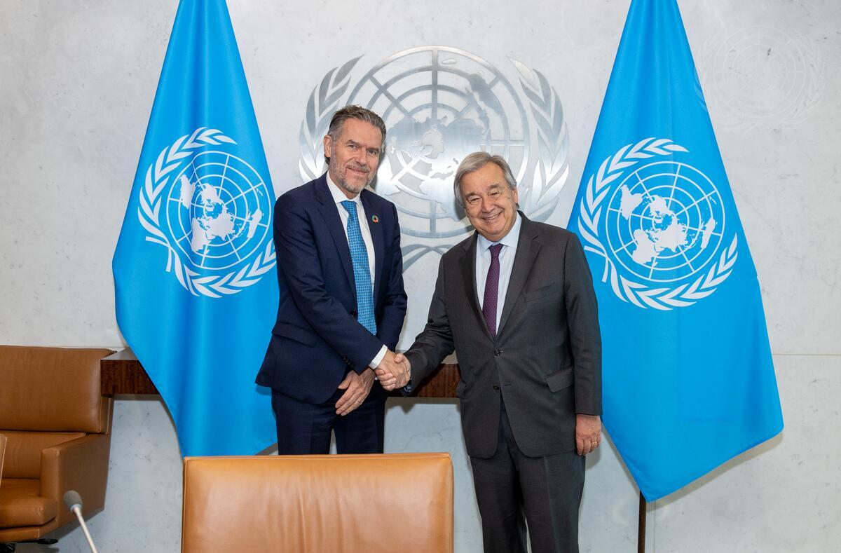 Secretary-General António Guterres (right) meets with Ib Petersen, Deputy Executive Director for Management of the United Nations Population Fund (UNFPA).