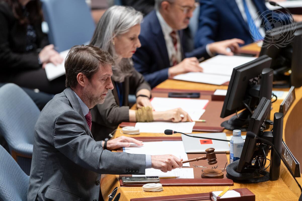 Ferit Hoxha, Permanent Representative of the Republic of Albania to the United Nations and President of the Security Council for the month of September, chairs the Security Council meeting on the situation in the Middle East (Syria).