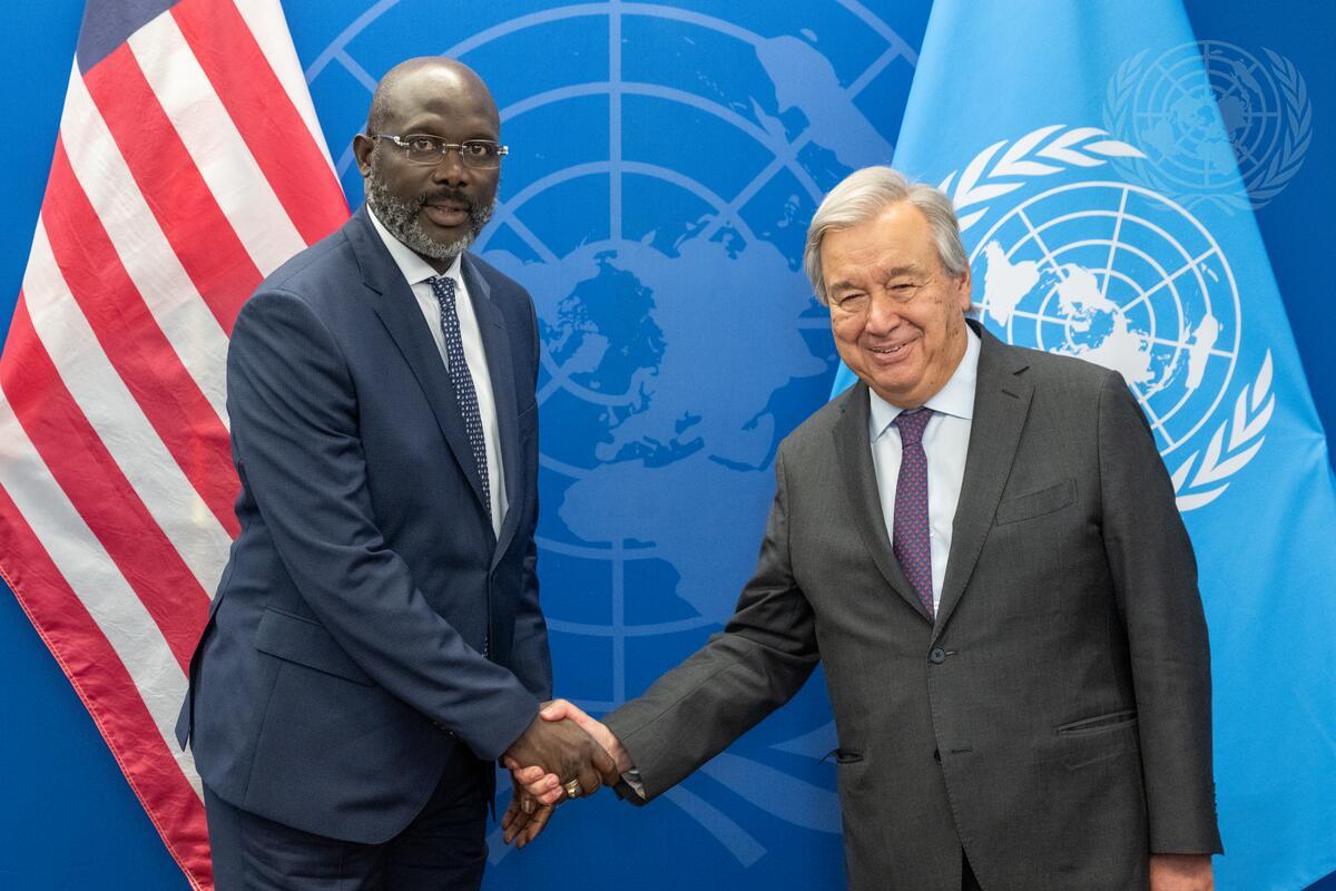 Secretary-General António Guterres (right) meets with George Manneh Weah, President of the Republic of Liberia.