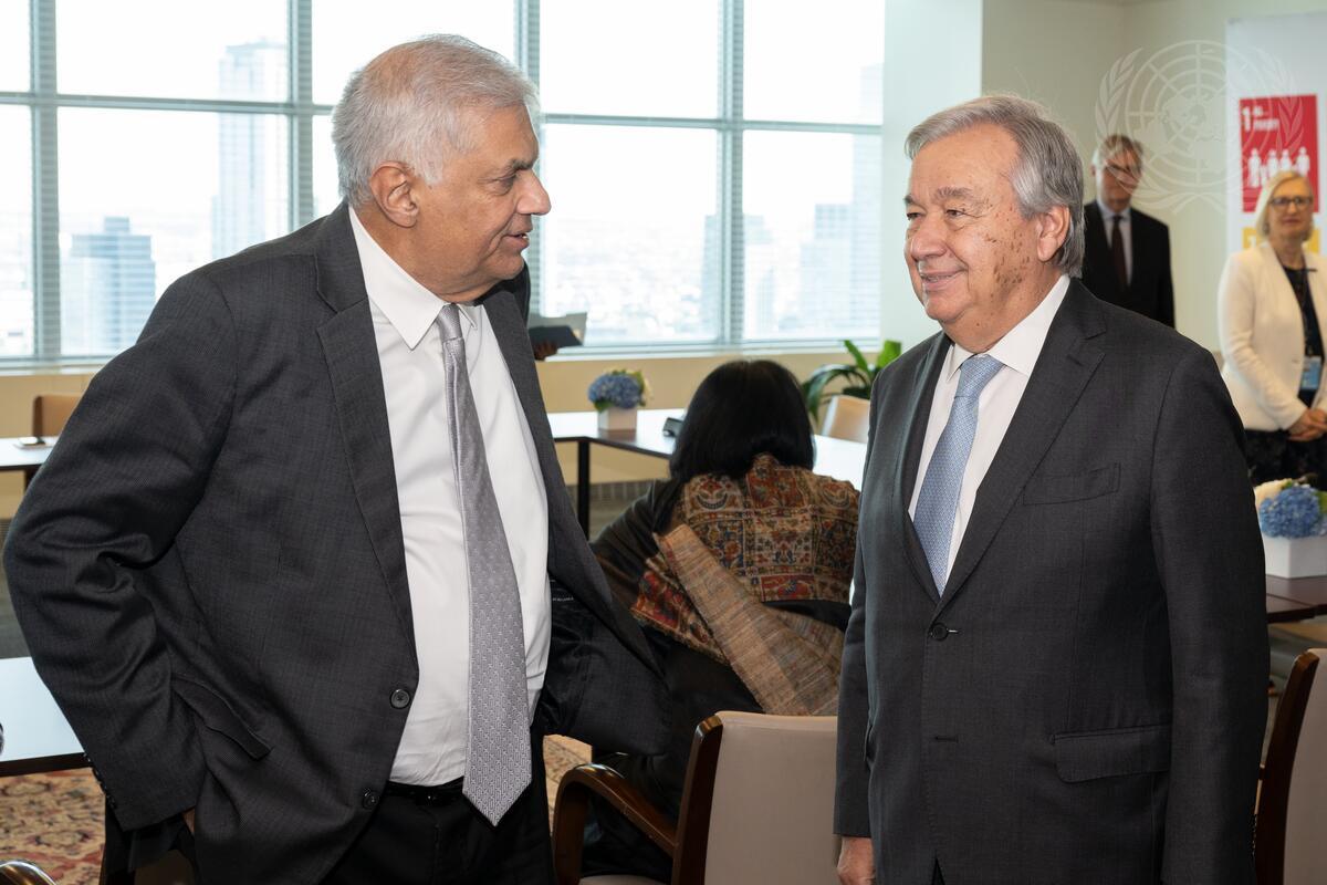 Secretary-General António Guterres (right) meets with Ranil Wickremesinghe, President of the Democratic Socialist Republic of Sri Lanka.