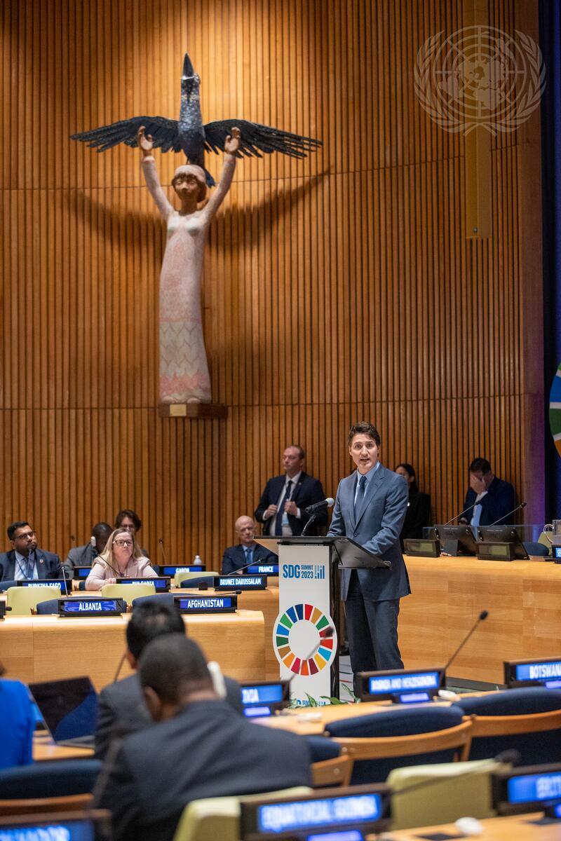 Justin Trudeau, Prime Minister of Canada and Co-Chair of the Sustainable Development Goals Advocates group, delivers keynote remarks to the closing segment of 2023 SDG Summit.