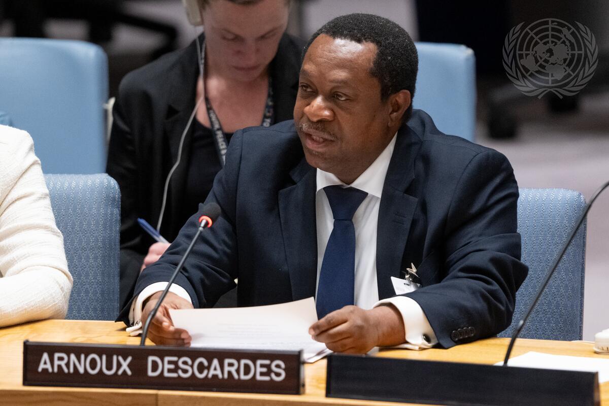 Arnoux Descardes, Executive Director of Volontariat pour le développement d’Haïti, briefs the Security Council meeting on peacebuilding and sustaining peace, with a focus on the new agenda for peace - addressing global, regional and national aspects of conflict prevention.