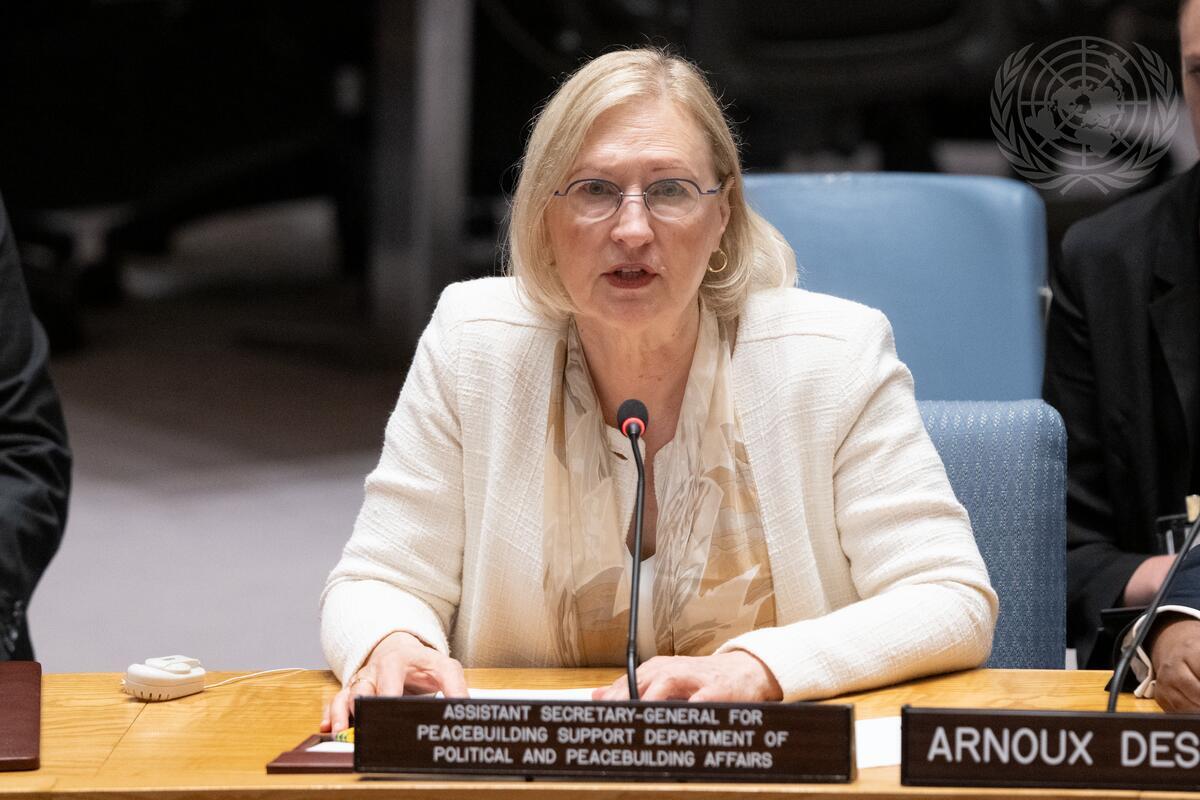 Elizabeth Spehar, Assistant Secretary-General for Peacebuilding Support, Department of Political and Peacebuilding Affairs (DPPA), briefs the Security Council meeting on peacebuilding and sustaining peace, with a focus on the new agenda for peace - addressing global, regional and national aspects of conflict prevention.