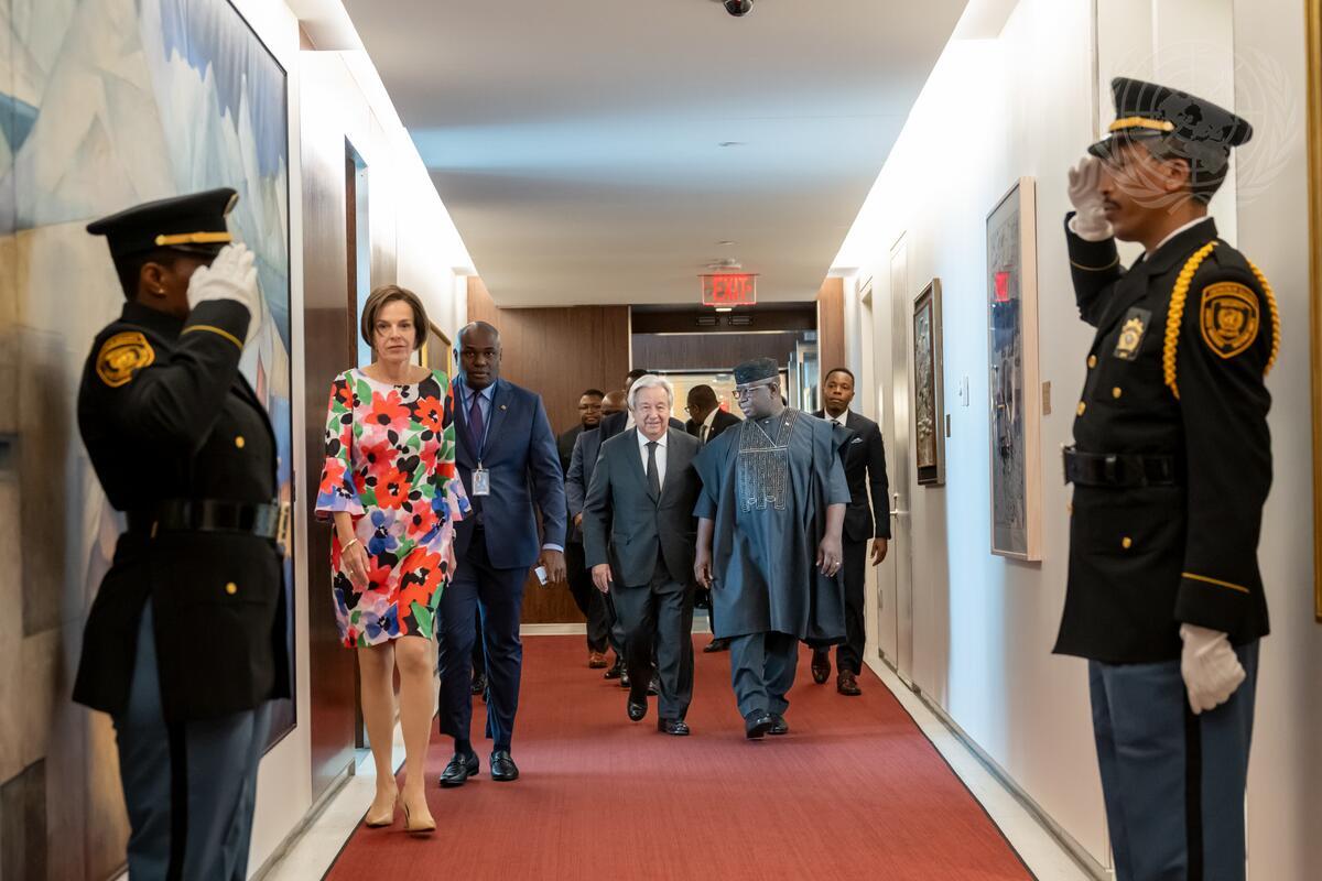 UN Secretary-General António Guterres (centre left) meets with Julius Maada Bio (centre right), President of Republic of Sierra Leone.
