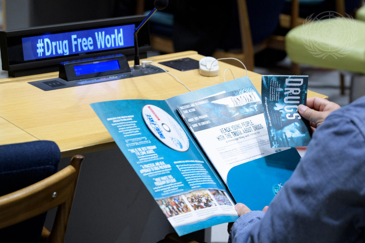 A participant views the pamphlet of a special event to commemorate International Day Against Drug Abuse and Illicit Trafficking (26 June).