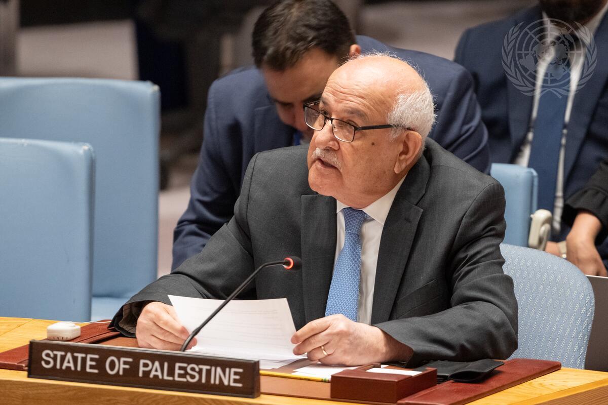 Riyad Mansour, Permanent Observer of the State of Palestine to the United Nations, addresses the Security Council meeting on the situation in the Middle East, including the Palestinian question.
