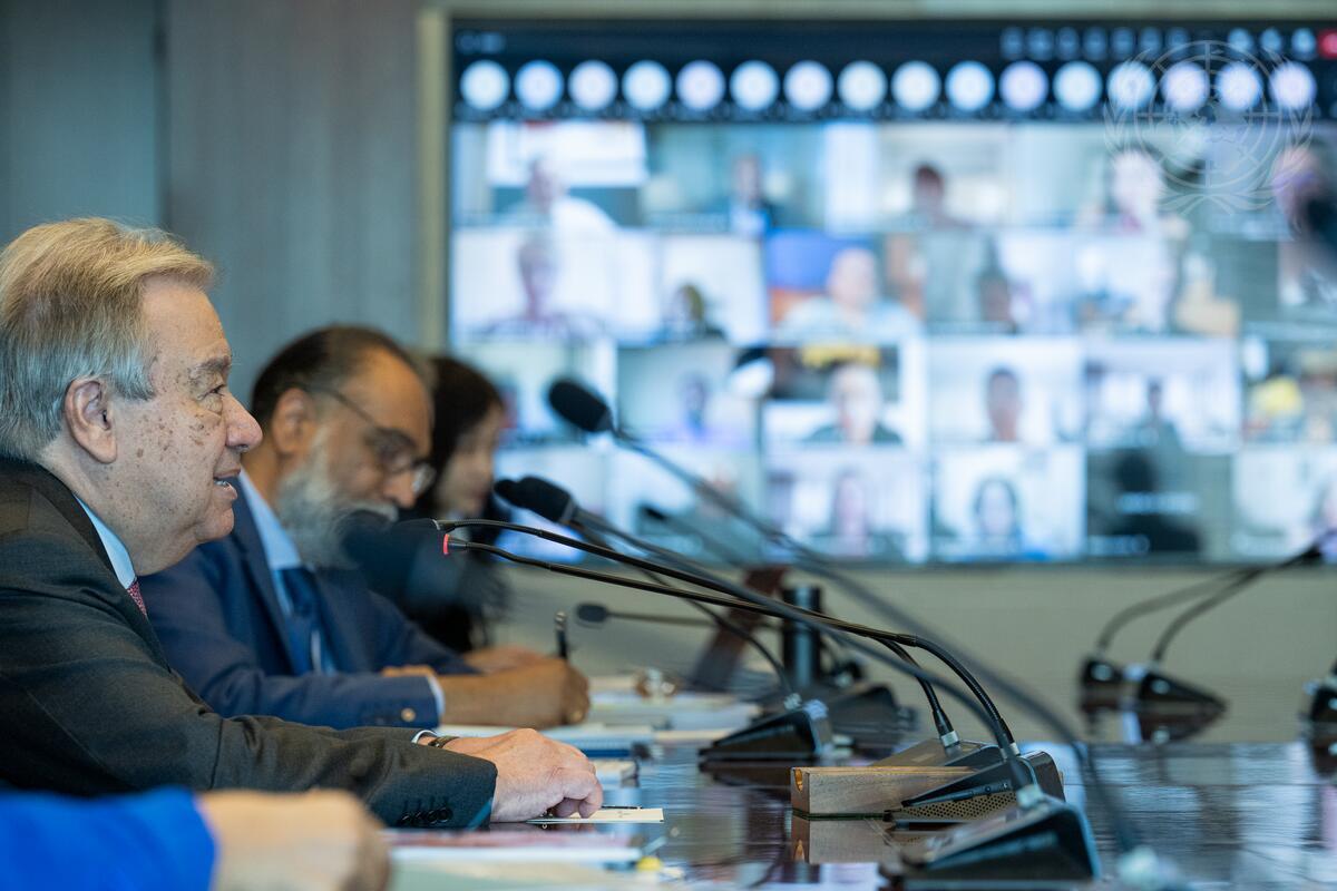 UN Secretary-General António Guterres (left) speaks at a virtual meeting of the High-level Advisory Body on Artificial Intelligence.