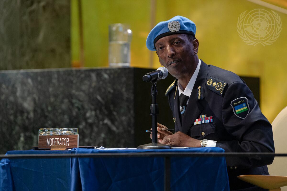 Christophe Bizimungu, Police Commissioner and Head of the Police Component of the United Nations Multidimensional Integrated Stabilization Mission in the Central African Republic (MINUSCA), moderates the session on "Preventing conflict and violence and sustaining peace" during the United Nations Chiefs of Police Summit (UNCOPS 2024).