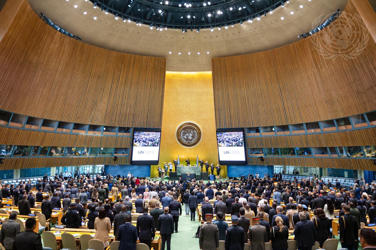 A moment of silence is observed during the United Nations Chiefs of Police Summit (UNCOPS 2024).