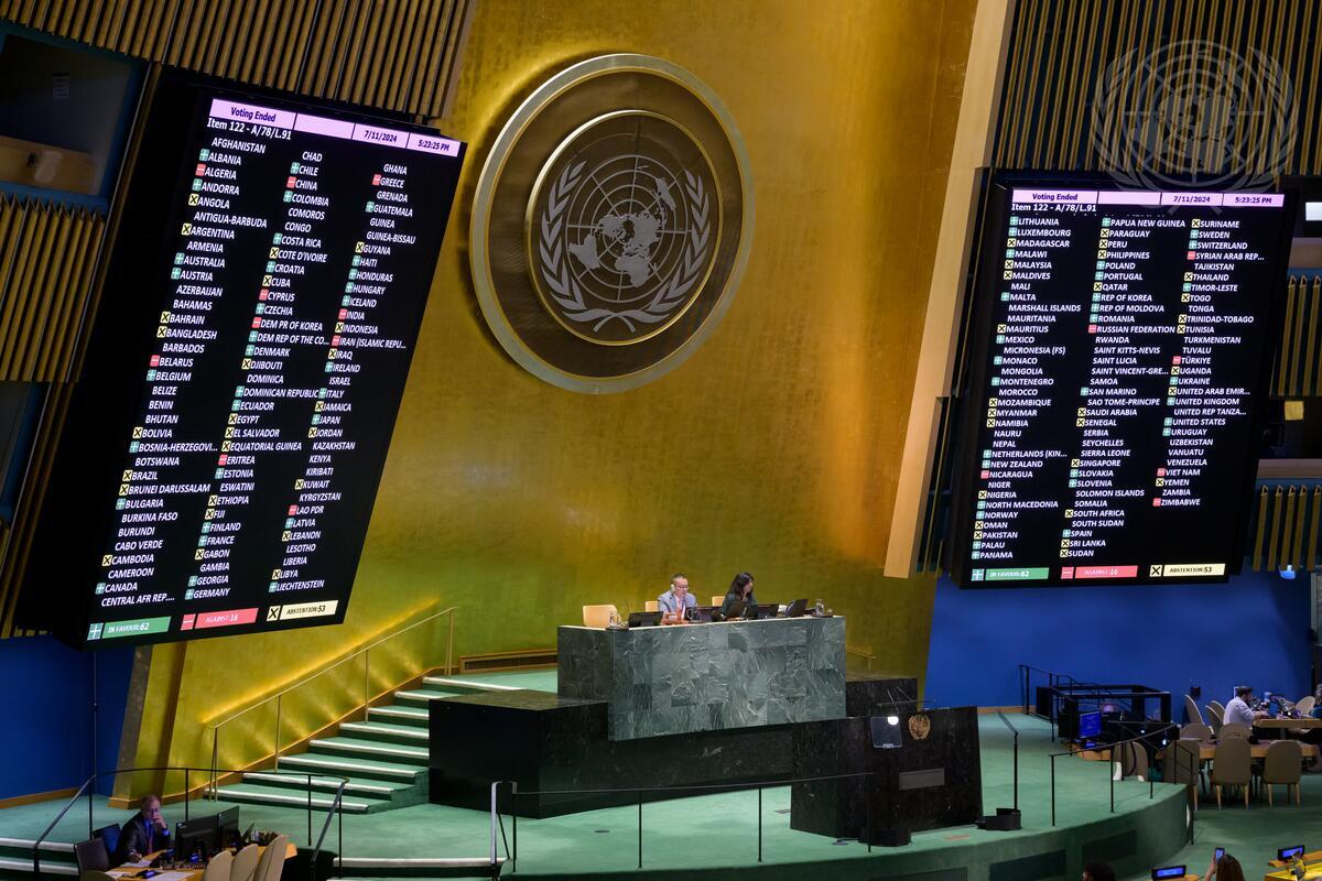 The General Assembly votes on an amendment on "Participation of non-governmental organizations, civil society organizations, academic institutions and the private sector in the high-level Summit of the Future" under the issue Strengthening of the United Nations system. The Amendment was adopted, by a recorded vote of 62 in favour to 16 against, with 53 abstentions.
