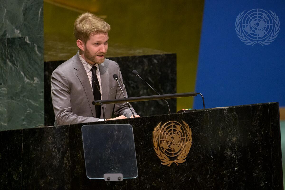 Dylan Adelman, Advisor, UN Management and Reform, of the United States Mission to the United Nations, introduces an amendment on "Participation of non-governmental organizations, civil society organizations, academic institutions and the private sector in the high-level Summit of the Future" under the issue Strengthening of the United Nations system.