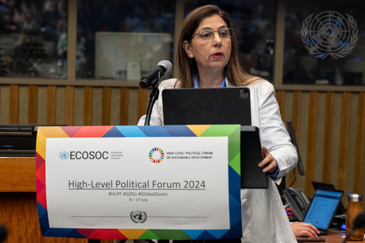 Rola Dashti, Executive Secretary of the Economic and Social Commission for Western Asia (ESCWA), addresses the meeting on Sustainable Development Goal (SDG) 1, No poverty, and interlinkages with other SDGs.