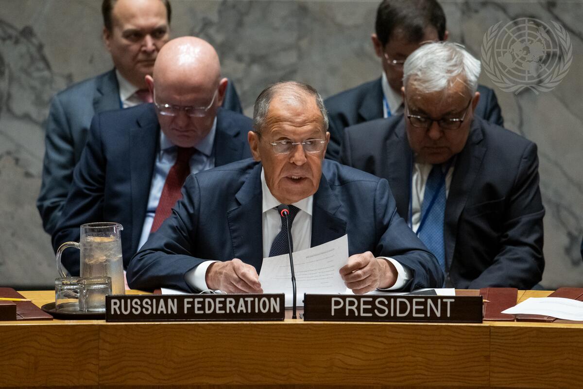 Sergey Lavrov, Minister for Foreign Affairs of Russian Federation and President of the Security Council for the month of July, chairs the Security Council meeting on maintenance of international peace and security, on the theme "Multilateral cooperation in the interest of a more just, democratic and sustainable world order".