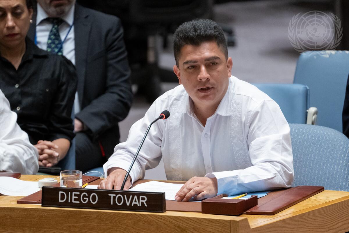 Diego Ferney Tovar, Representative of the high contracting party to the Commission for the Follow-Up, Promotion and Verification of the Implementation of the Final Agreement (CSIVI), briefs the Security Council meeting on the United Nations Verification Mission in Colombia (UNVMC).