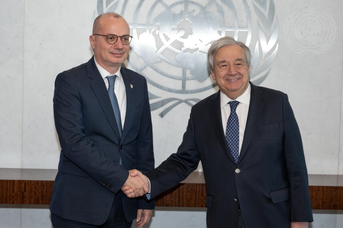 Secretary-General António Guterres (right) meets with Igli Hasani, Minister for Europe and Foreign Affairs of the Republic of Albania.