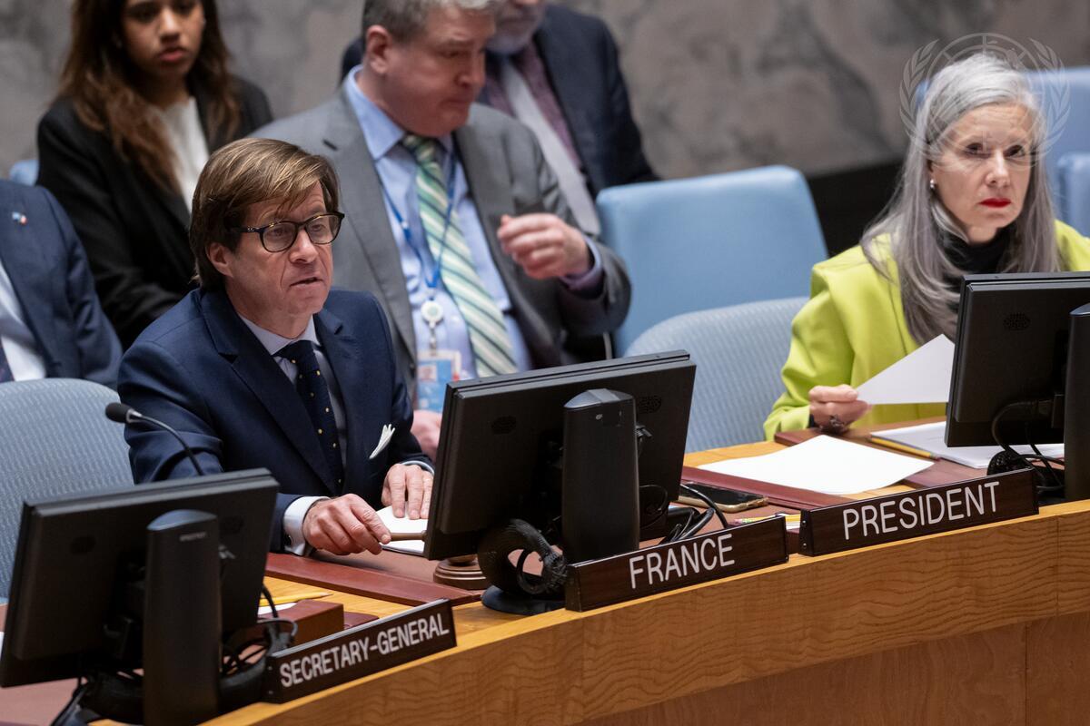 Nicolas de Rivière, Permanent Representative of France to the United Nations and President of the Security Council for the month of January, chairs the Security Council meeting on the situation in the Middle East, including the Palestinian question.