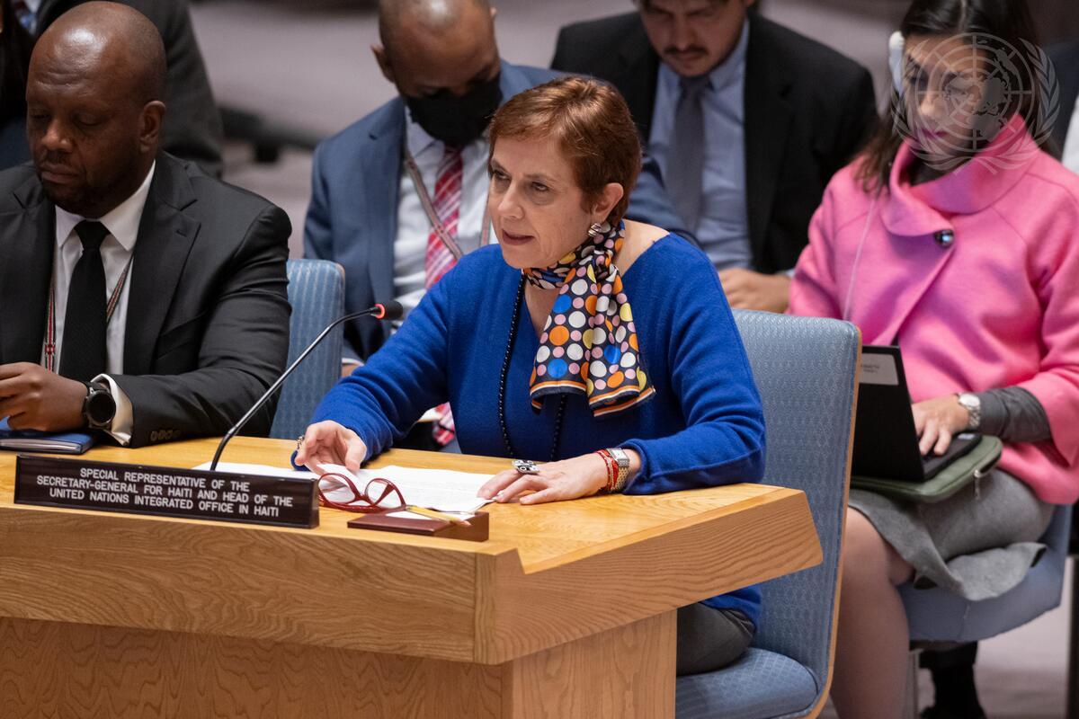 María Isabel Salvador, Special Representative of the Secretary-General for Haiti and Head of the United Nations Integrated Office in Haiti, briefs the Security Council meeting on the question concerning Haiti.