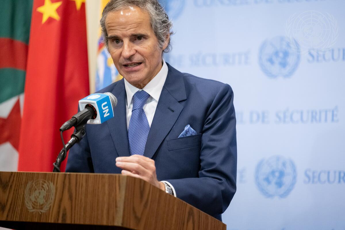 Rafael Mariano Grossi, Director-General of International Atomic Energy Agency, briefs reporters at UN Headquarters.