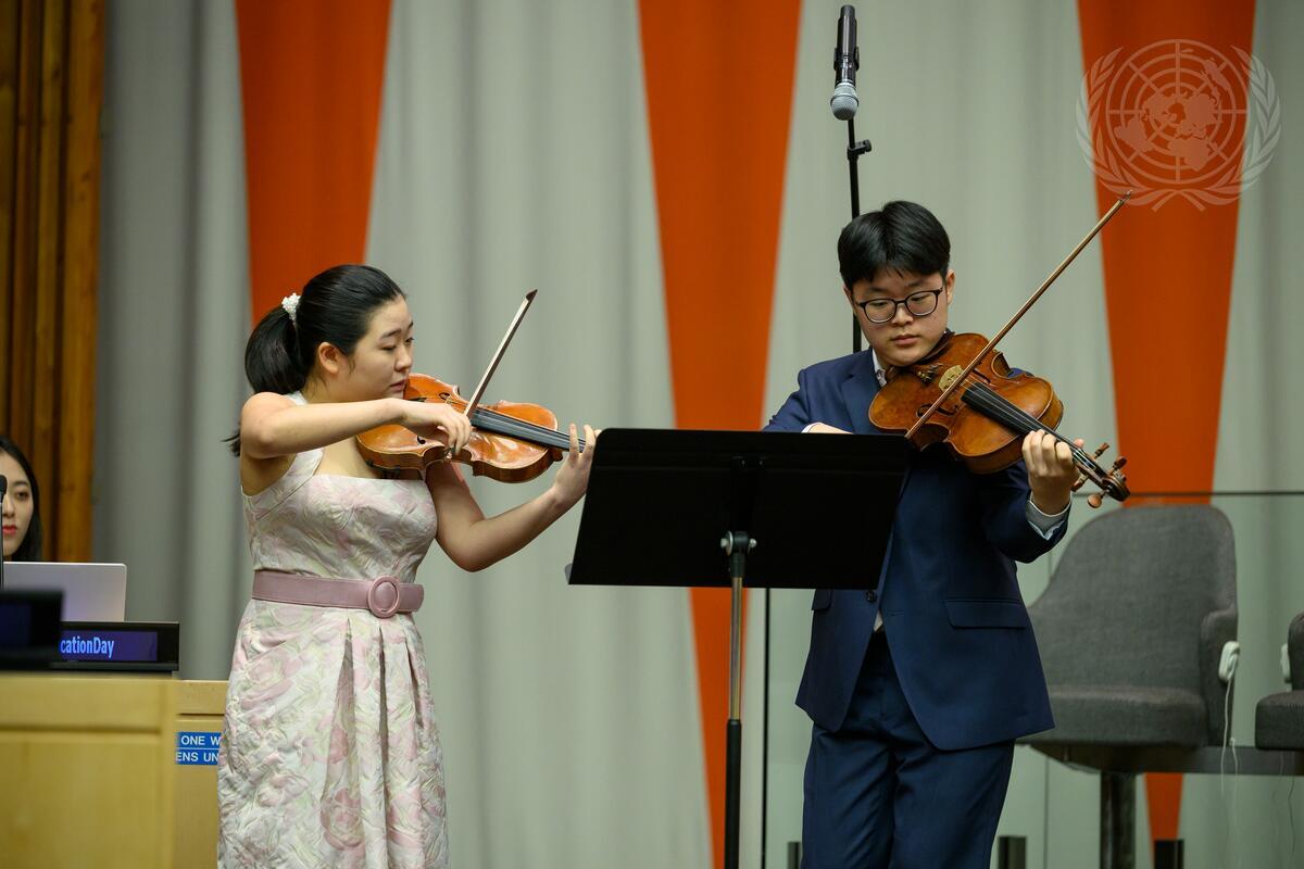 Jinan Lorenzio Wu and Edward Lee from the Juilliard School in New York, performs during the event “Learning for Lasting Peace” on the occasion of the International Day of Education (24 January). The event is co-organized by United Nations Educational, Scientific and Cultural Organization (UNESCO) and Group of Friends for Education and Lifelong Learning.