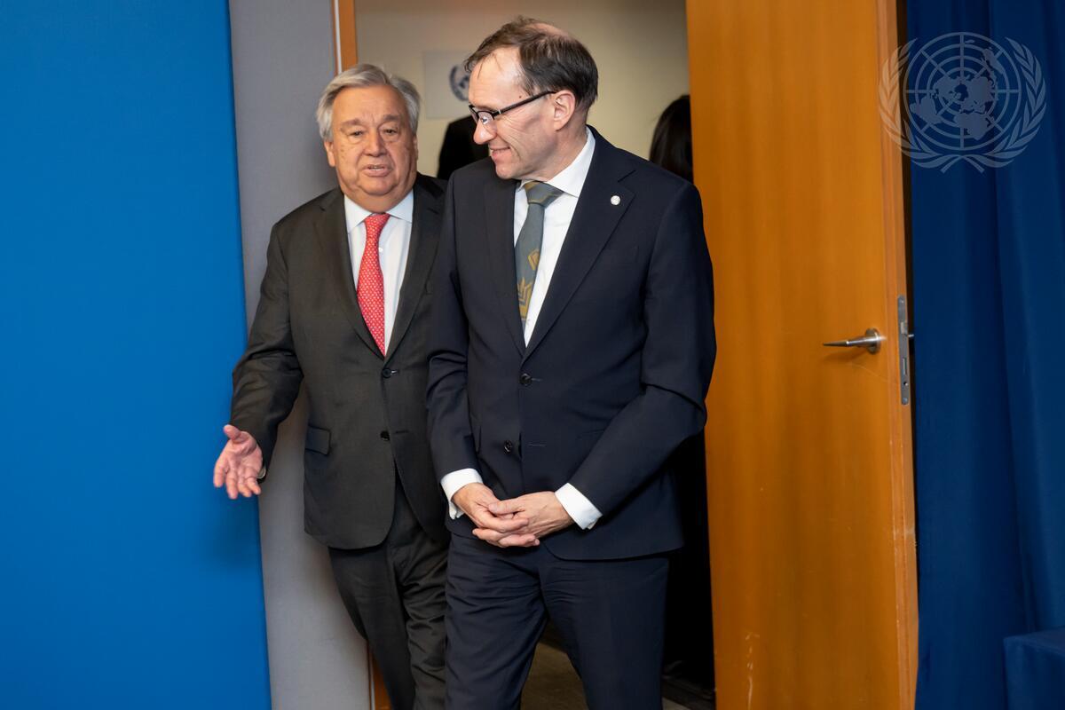 Secretary-General António Guterres (left) meets with Espen Barth Eide, Minister for Foreign Affairs of Norway.