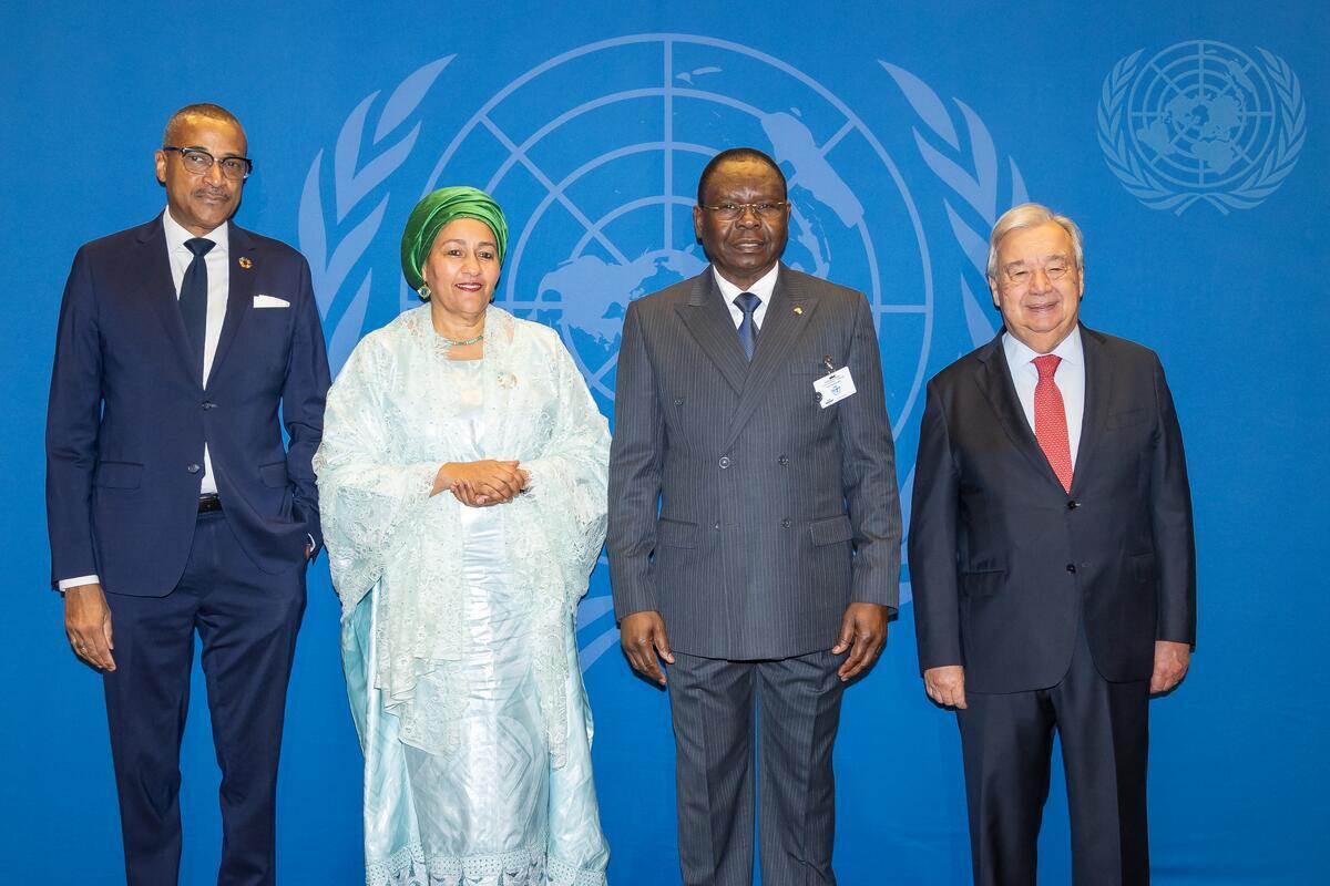 Secretary-General António Guterres, Deputy Secretary-General Amina Mohammed, and Courtenay Rattray, Chef de Cabinet of the Secretary-General, welcome the Head of Delegations on the occasion of the Opening of the Seventy-ninth Session of the General Assembly.