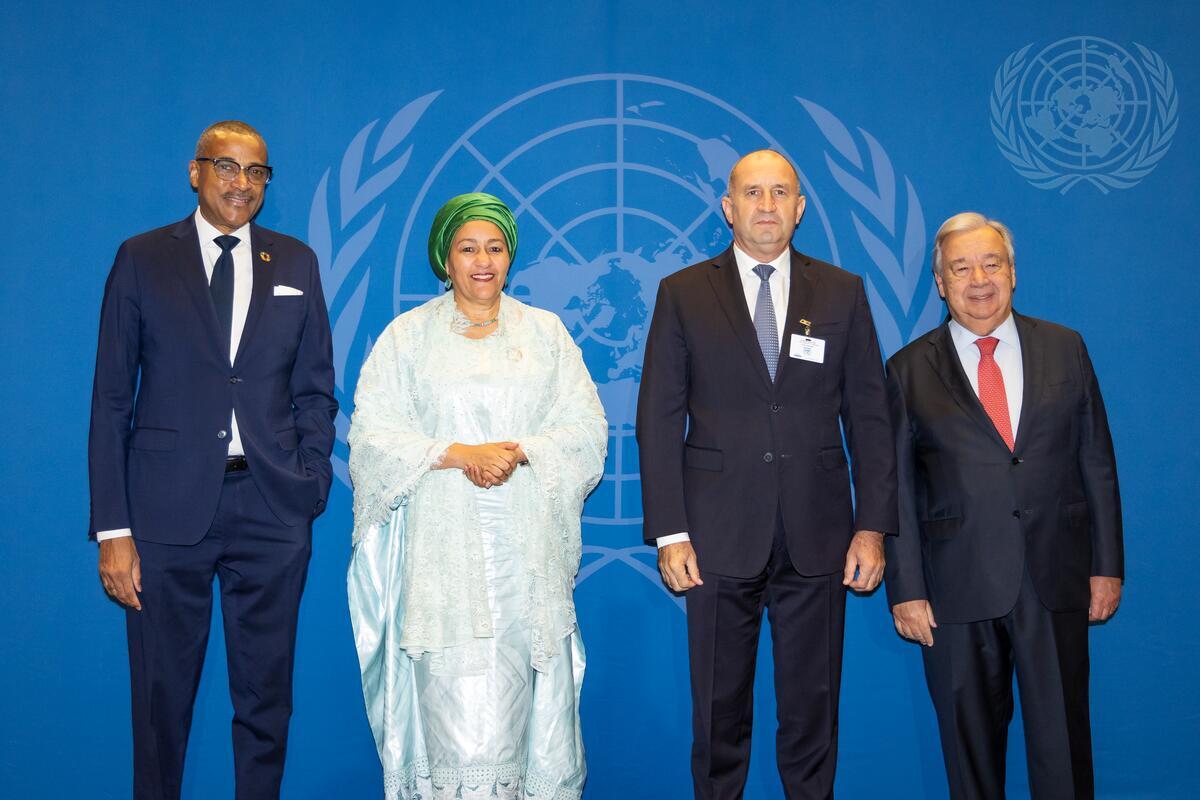 Secretary-General António Guterres, Deputy Secretary-General Amina Mohammed, and Courtenay Rattray, Chef de Cabinet of the Secretary-General, welcome the Head of Delegations on the occasion of the Opening of the Seventy-ninth Session of the General Assembly.