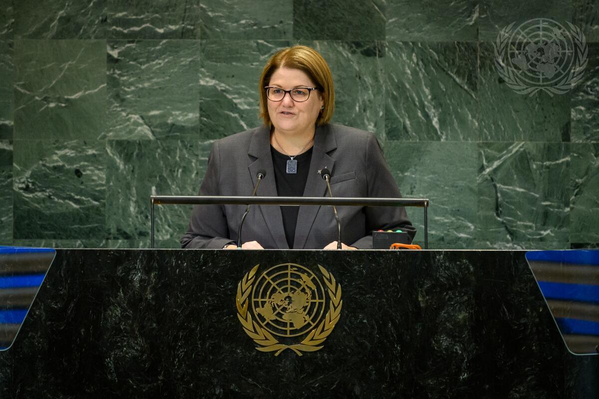 Carolyn Schwalger, Permanent Representative of New Zealand to the United Nations, addresses the Summit of the Future.
